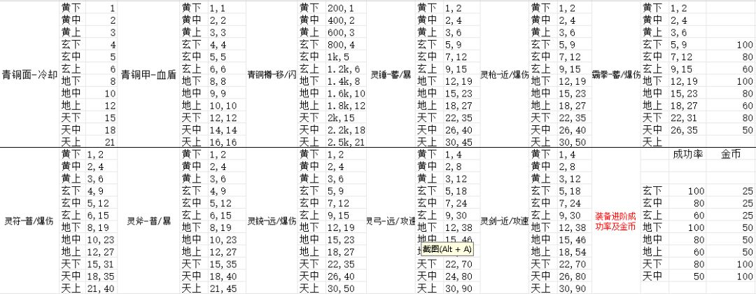 )。根据成功率和所花金币可以算出打造玄中到天上所花金币的期望是(有小数位的保留两位小数):25,56.25,97.92,147.92,210.42,293.75,428.75,618.75