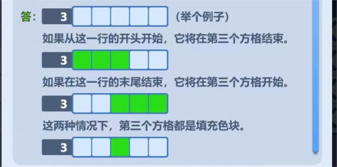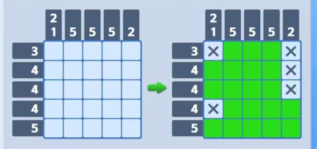答:在进入关卡后,玩家可观察网格左方以及上方的数字提示。外围数字代表所在的行或列的相连方块数量,如果有两个及以上数字,则说明相连数字方块中间有间隔。您需要通过推理来确定方块所在的位置。