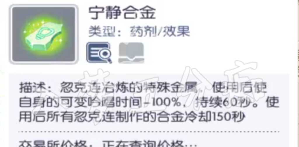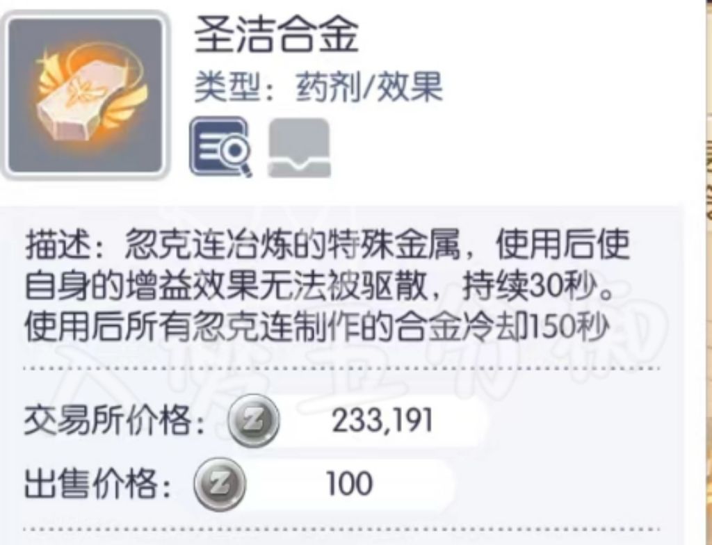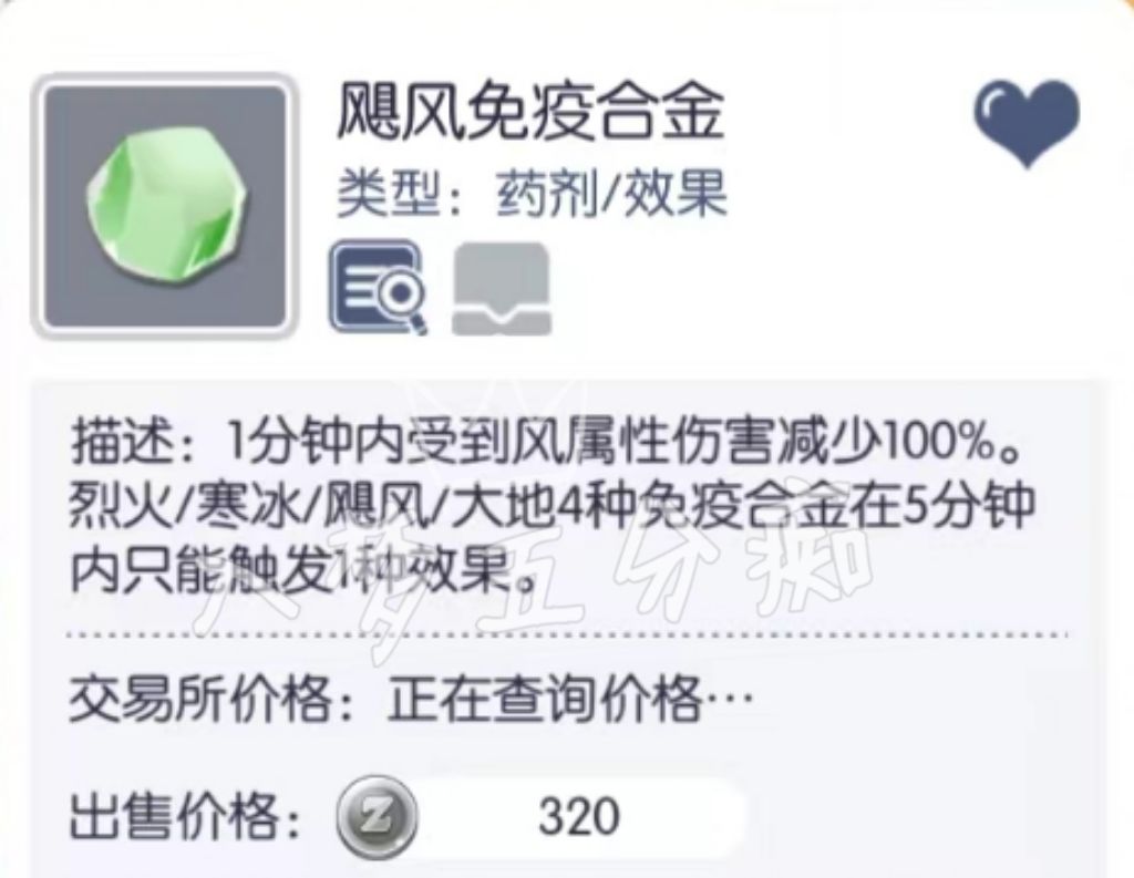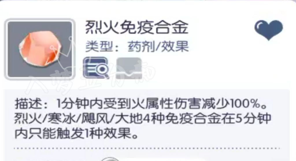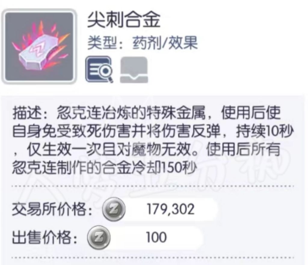 ① 铁匠4属性免疫合金:使用后1分钟内可减少100%对应属性伤害,与4属性减伤波利糖分开CD,免疫合金CD共通,CD为5分钟;