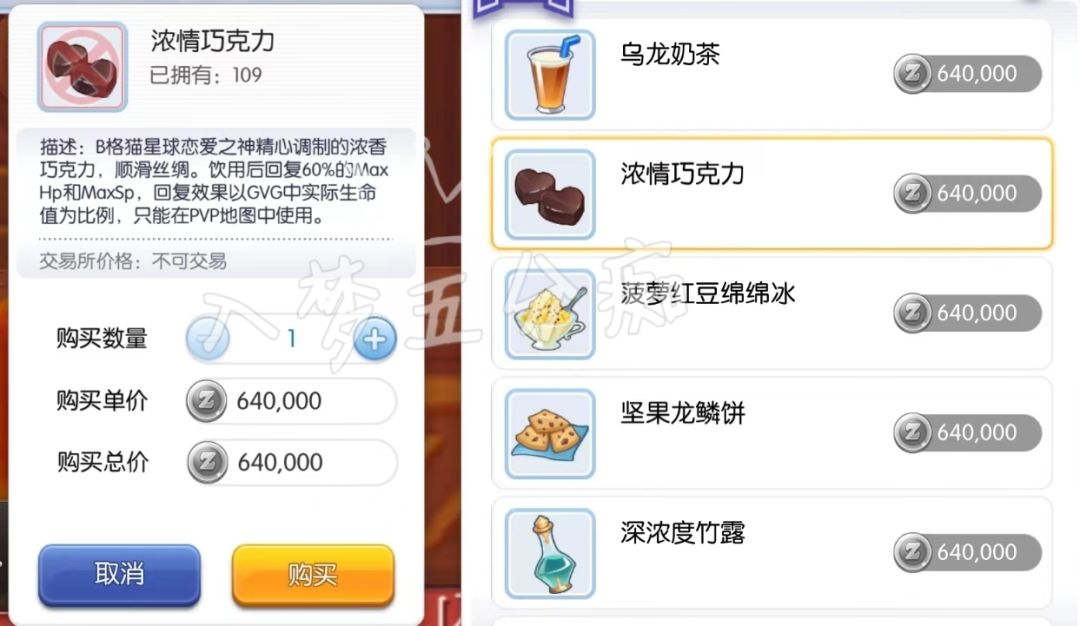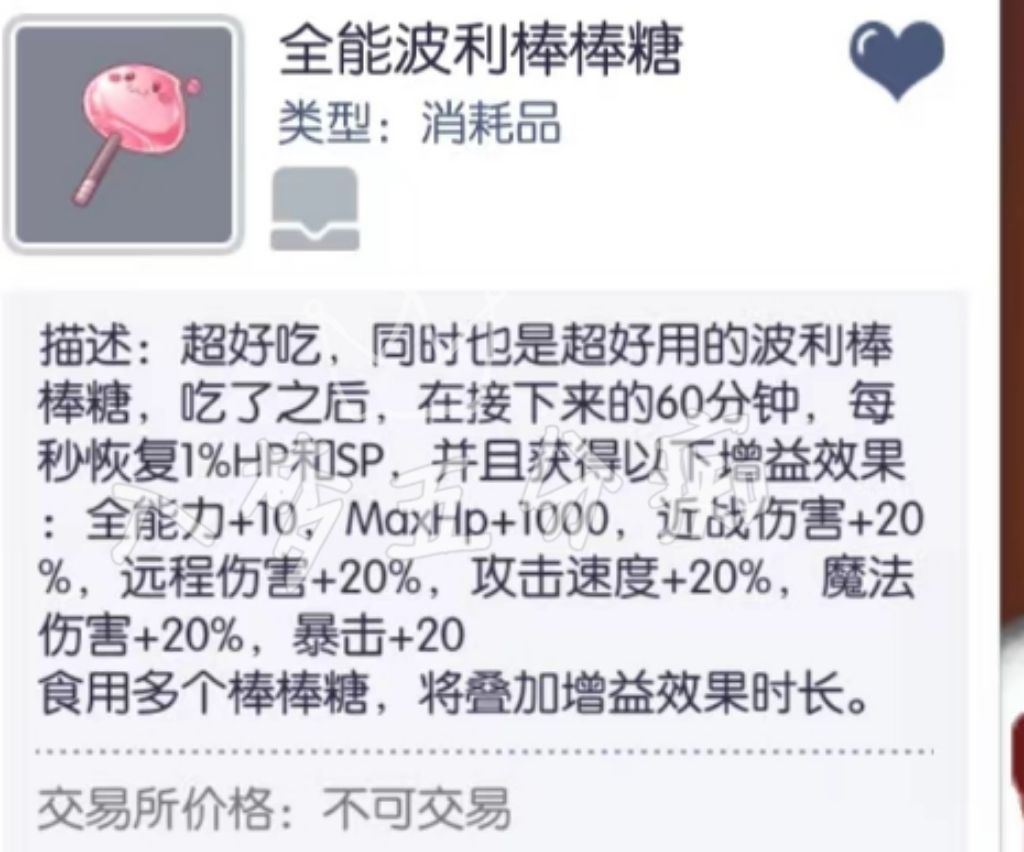 ① 波波利糖:2分钟内每秒回复3%HP,CD5分钟,可与秘制亲自丼共存(各职业必备)