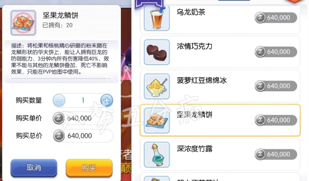 ① 坚果龙鳞饼在GVG地图内减伤40%持续3分钟,CD5分钟(与其他龙鳞饼不能叠加)