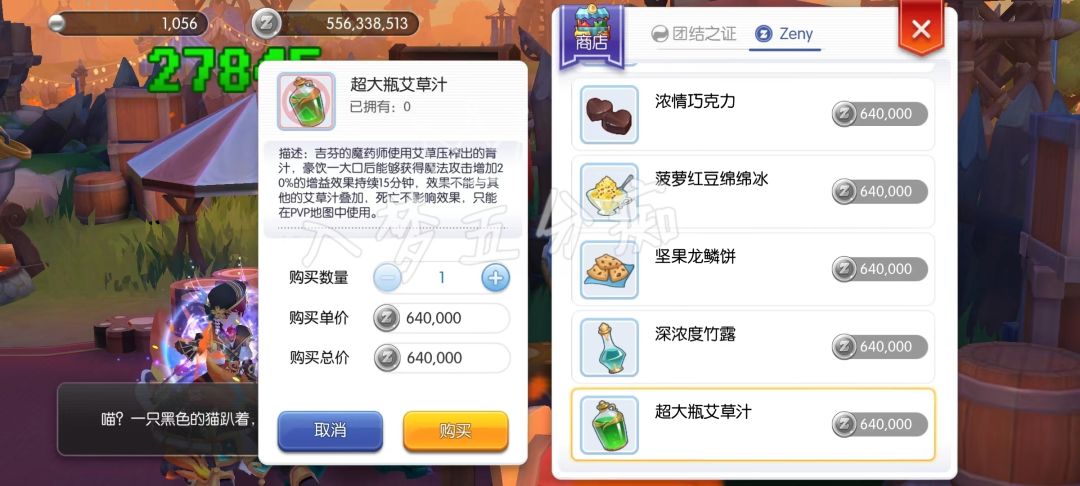 ② 超大瓶艾草汁:15分钟内增加20%魔法攻击,CD15分钟,魔法输出必备;