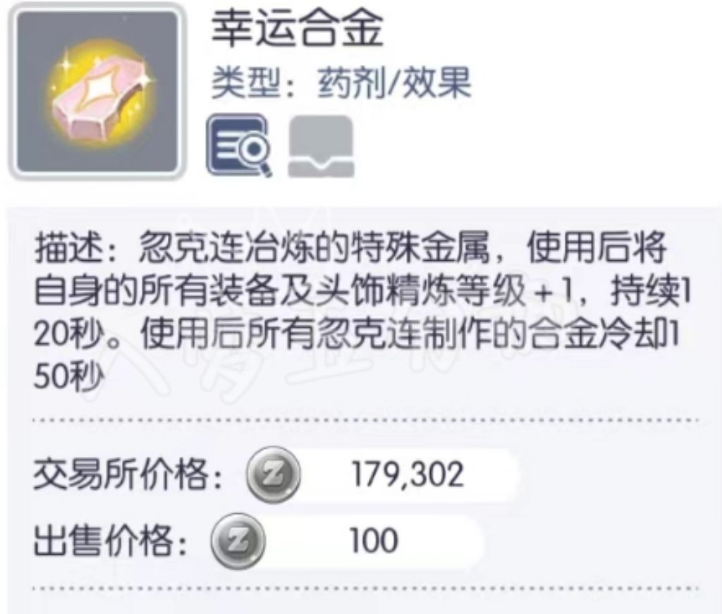 另:铁匠属性增伤合金及100/400ATK合金,可互相覆盖增伤但不共存,看自行需求(如15%属性增伤结束后可继续使用5%增伤,等15%属性增伤CD结束后可继续覆盖,ATK合金同理)