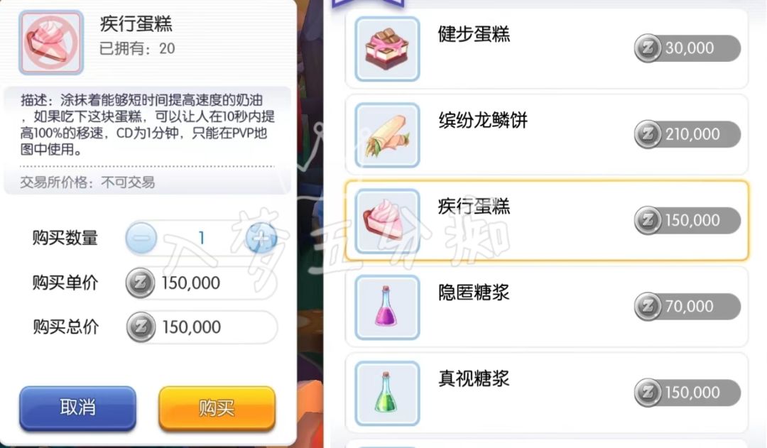 ③ 隐匿糖浆:30秒狸猫卡体验券,CD10秒,移速减少,保命用(保命时建议与疾行蛋糕共同使用)