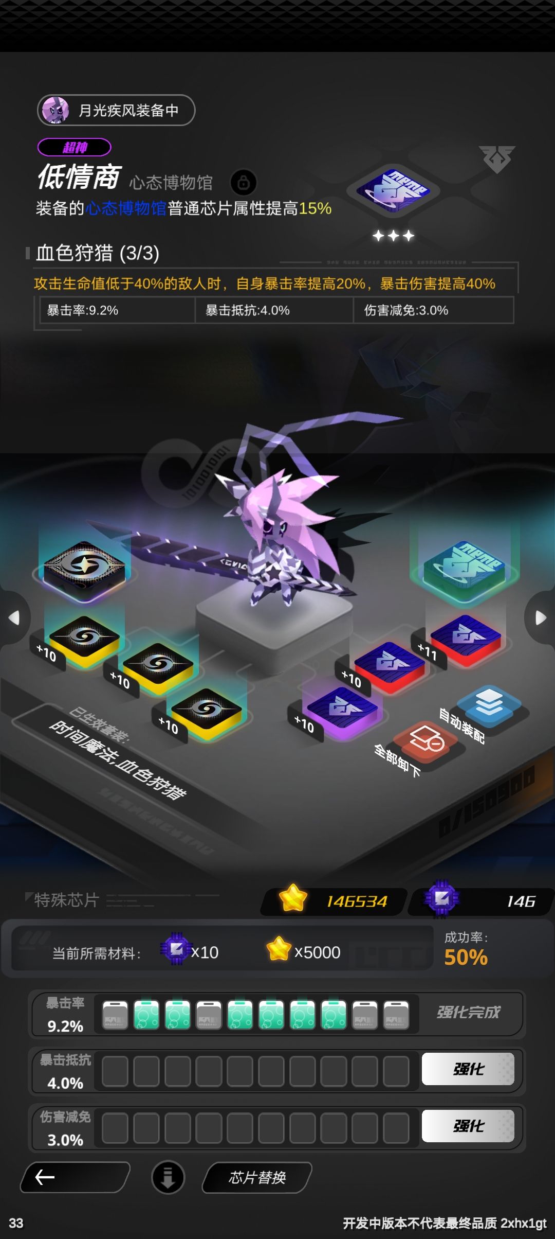 5.不玩的蓝色崽崽,紫色崽崽可以全部回溯,去商店换,芯片精华,然后根据自己需求换自己需要的芯片,建议都搞一套,后面有多余的再刷疾风,主要的芯片最好能刷出混沌。去背包,点击强化芯片的材料,可以跳到芯片关,虽然打了都是分解。