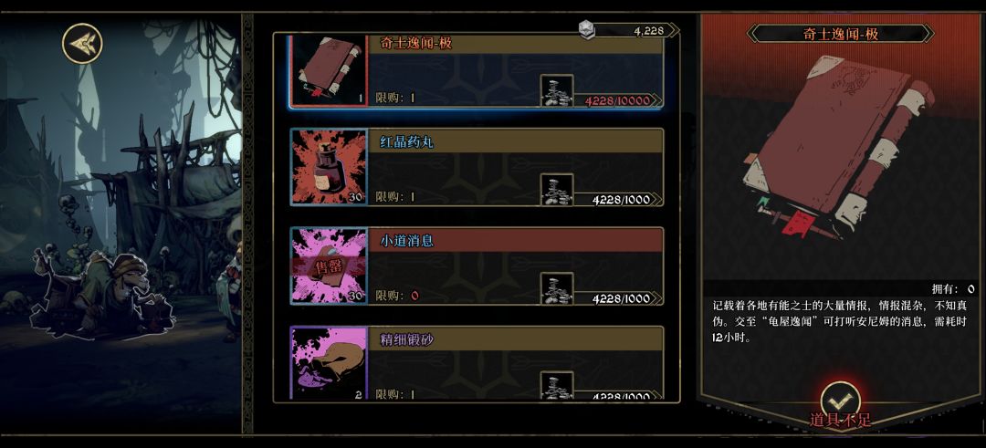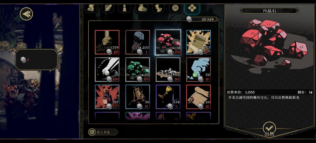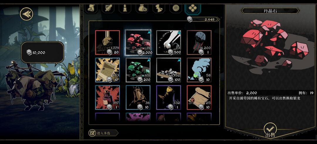 在游荡商人处我们可以双倍价格出售宝石珍玩,但除宝石以外的物品售价仍与地鼠商人相同,每天游荡商人的持有金额为1w。