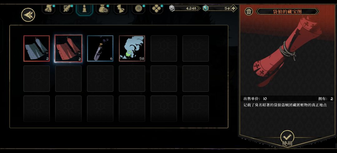 游戏中每天可以通过完成傅西掮客的袋狼任务获取袋狼藏宝图,也可以通过击杀路途中的地鼠获取藏宝图,操作方法同上,退出游戏后重新进入,打开左下角背包使用藏宝图即可刷新路程,藏宝图相比起牛车更加实用,牛车只能移动到几个固定城市内,但藏宝图使用后会直接返回当前的出发点,进一步提高保存率。
