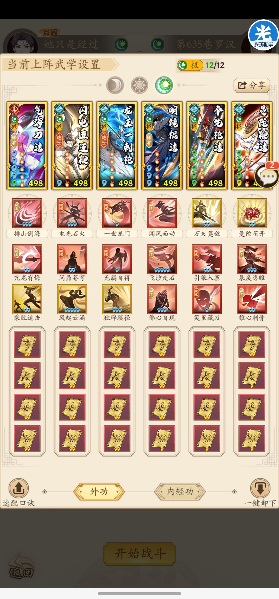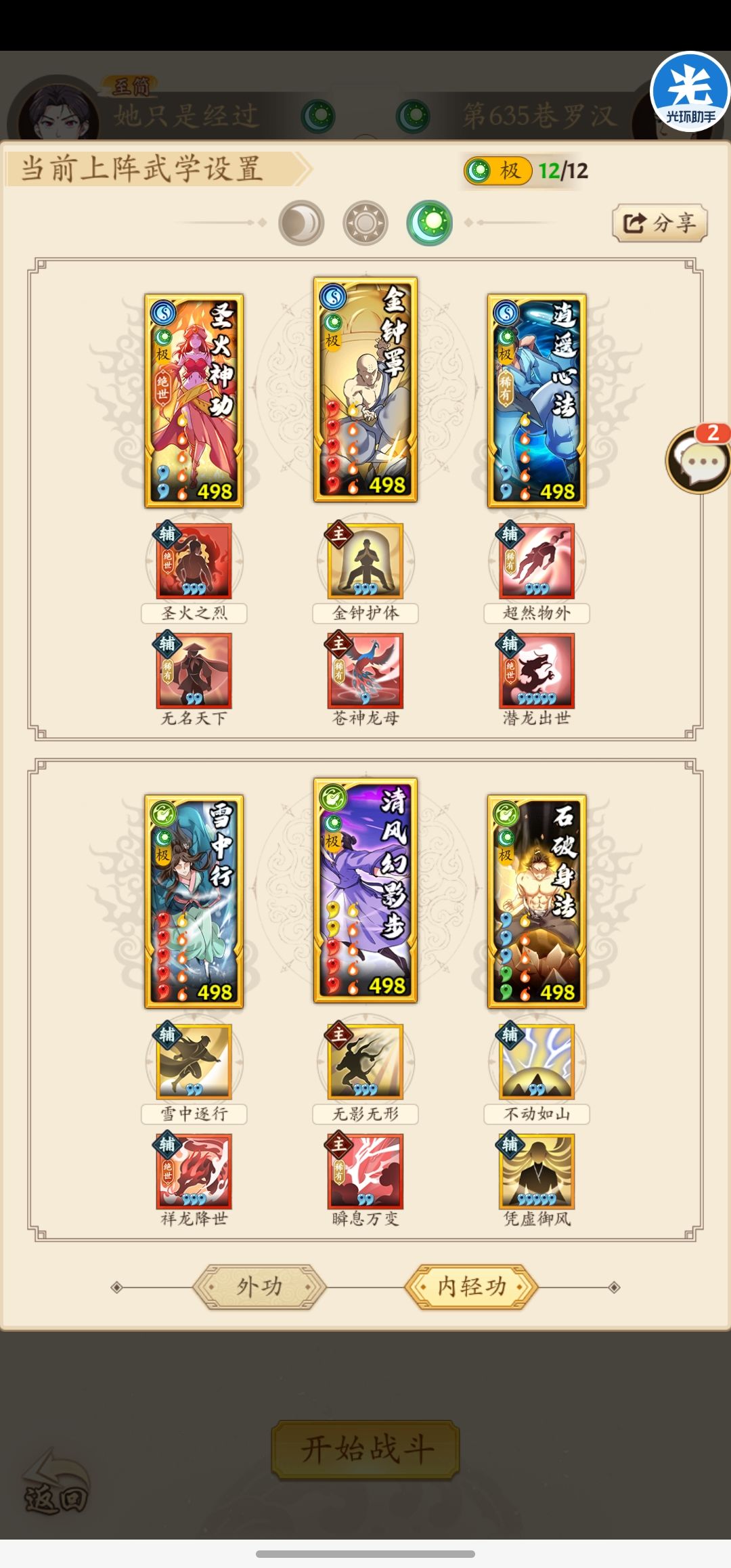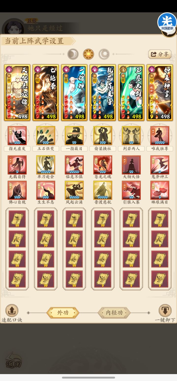 按照以往的三系塔套路来讲,一个套路当中总可以凑齐双太极无羁套,在前中期这样的配置确实可以实现实时爬塔,基本没有什么压力。但是在600层以后,木人基础属性大幅度强化,再加上对于套路内息12极的严苛要求,使得爬三系塔需要一些调整。