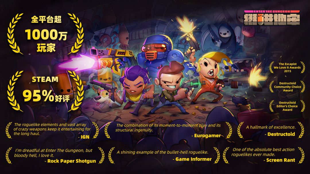 #咩咩挺进地牢 挺进地牢》(Enter the Gungeon)是一款结合了RPG元素的射击游戏,由Dodge Roll制作。游戏以其独特的像素风格和高难度挑战而受到玩家的喜爱。以下是一些关于《挺进地牢》的攻略信息: