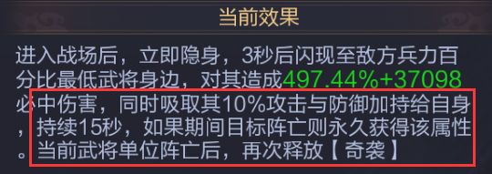 既然对面属性指数增长,那我们偷取的属性也是很客观的,弥补了属性上的差距就可以更快完成击杀(代表武将:无双吕蒙、天谕小乔等)。