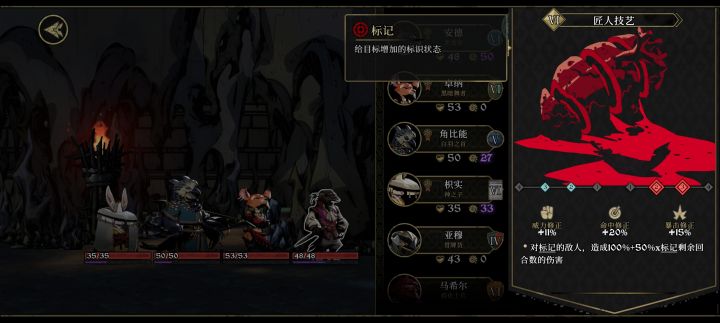 第一回合:小鹿3标记,乌鸦3标记,兔子祈祷给乌鸦叠属性,牛两动标记-2(此时小鹿在一号位,污秽攻击,因为小鹿嘲讽,打不到乌鸦,横冲直撞一号位小鹿直接闪),白羽3标记。