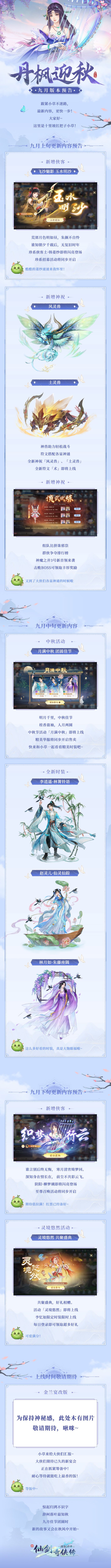 小草也为大侠们带来了九月的版本预告