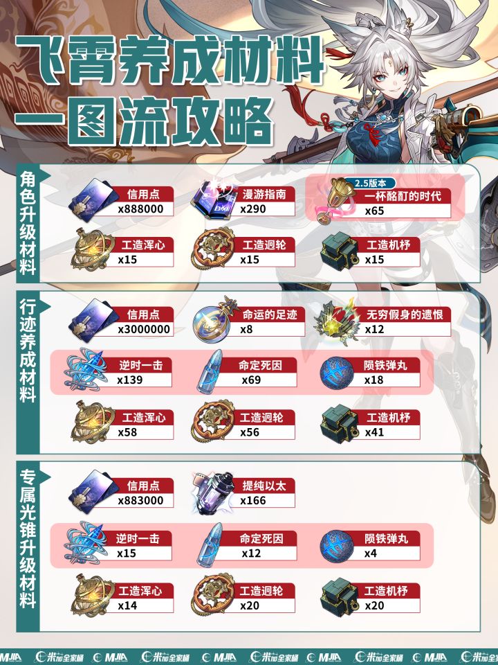 星穹铁道2.5新角色|飞霄、灵砂、貊泽|角色材料一览