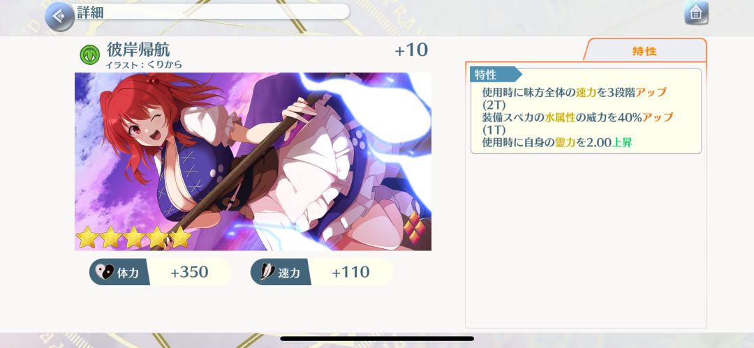 6段,花、天狗、人偶、阎魔、水栖、水着、夏,这特攻杂的同时还不广,