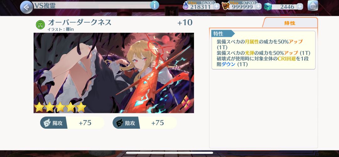 其次是面板。恶灵凭依105阴攻45阳攻,超越黑暗是75阳攻75阴攻,唯一可以说的是这张能给打阳攻的人多提供30阳攻....