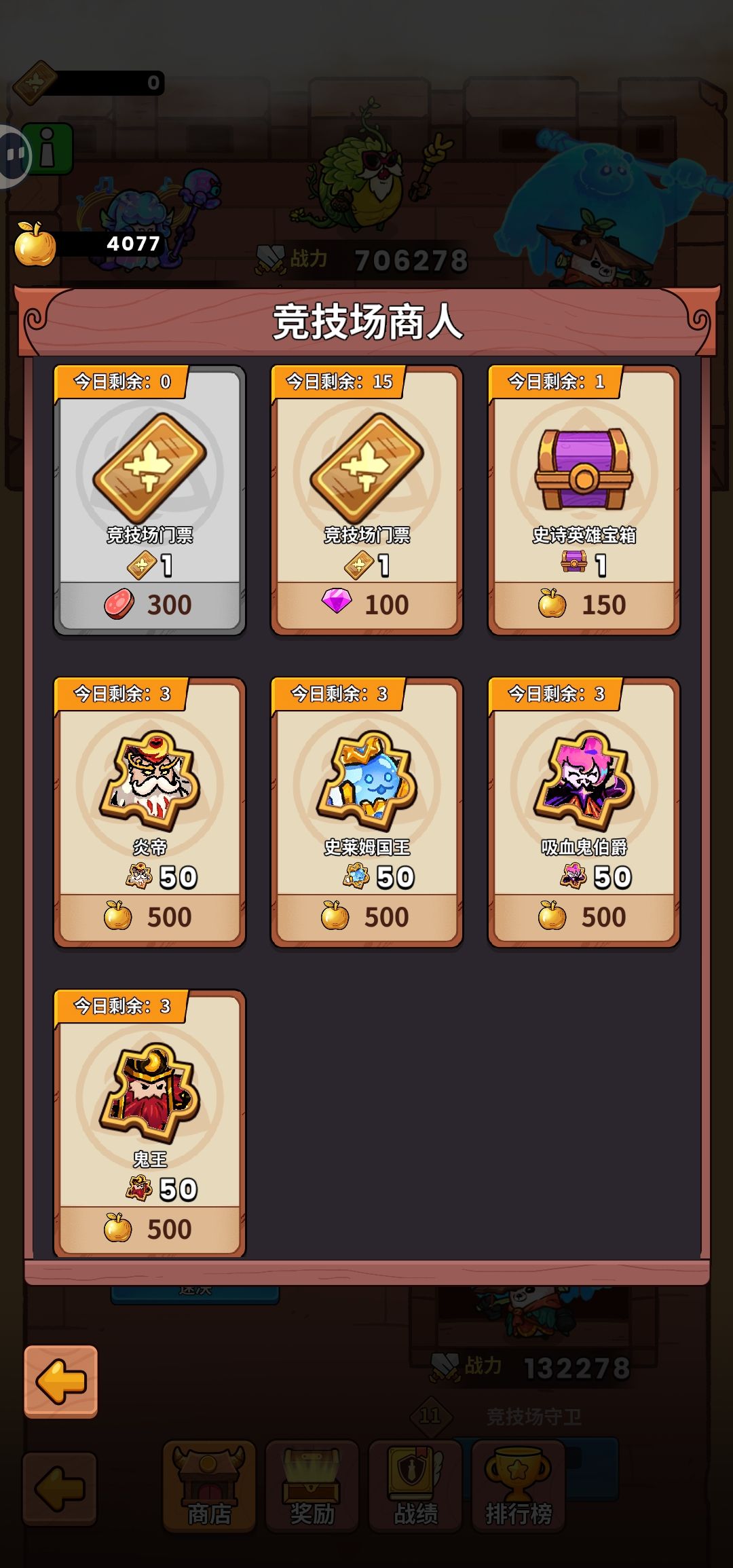 竞技场的话(图九),能打到哪就算哪,主要就是攒材料兑换,这边的建议就是根据英雄的综合实力,兑换顺序就是史莱姆—炎帝—吸血鬼—鬼王,希望小伙伴们不要瞎换哦。