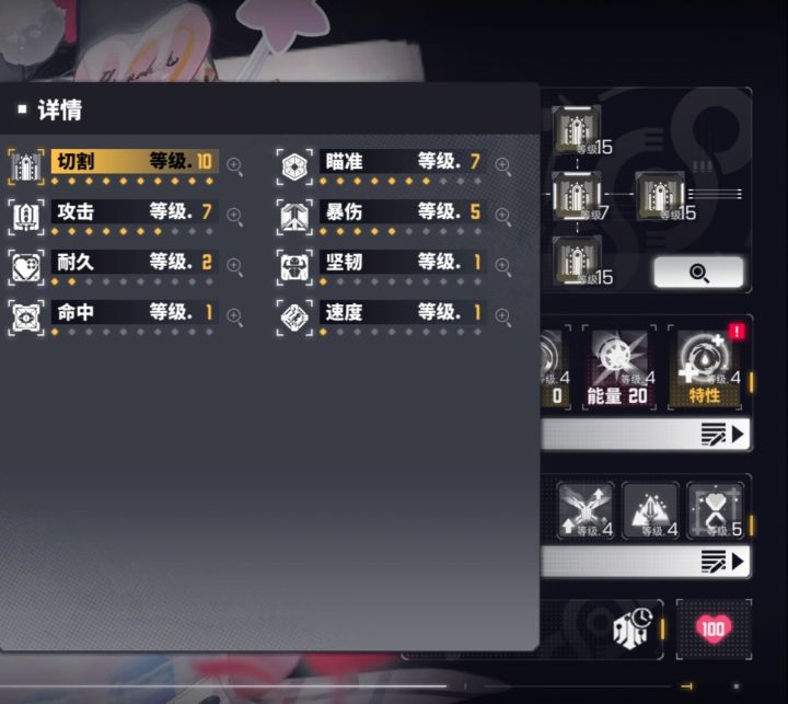:切割(10)攻击7瞄准7暴伤5