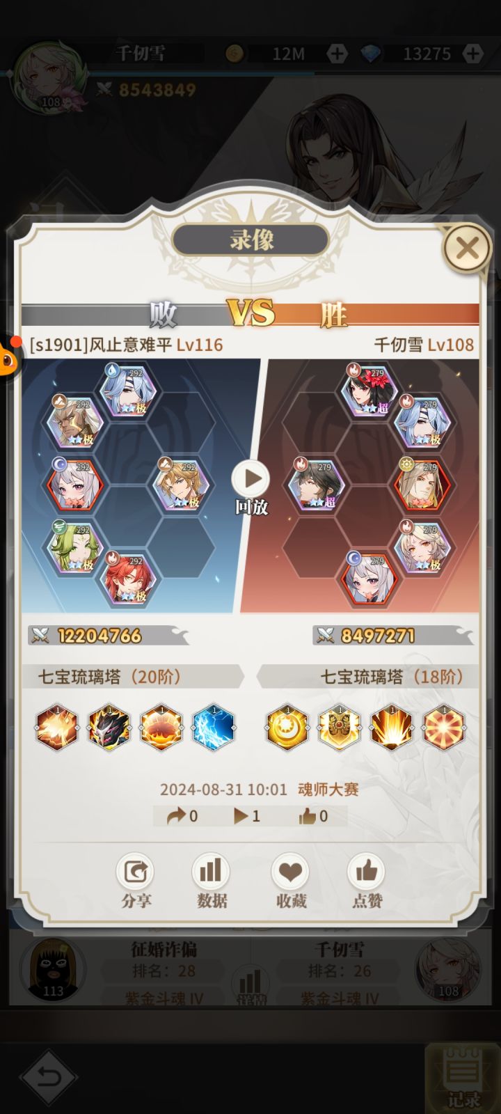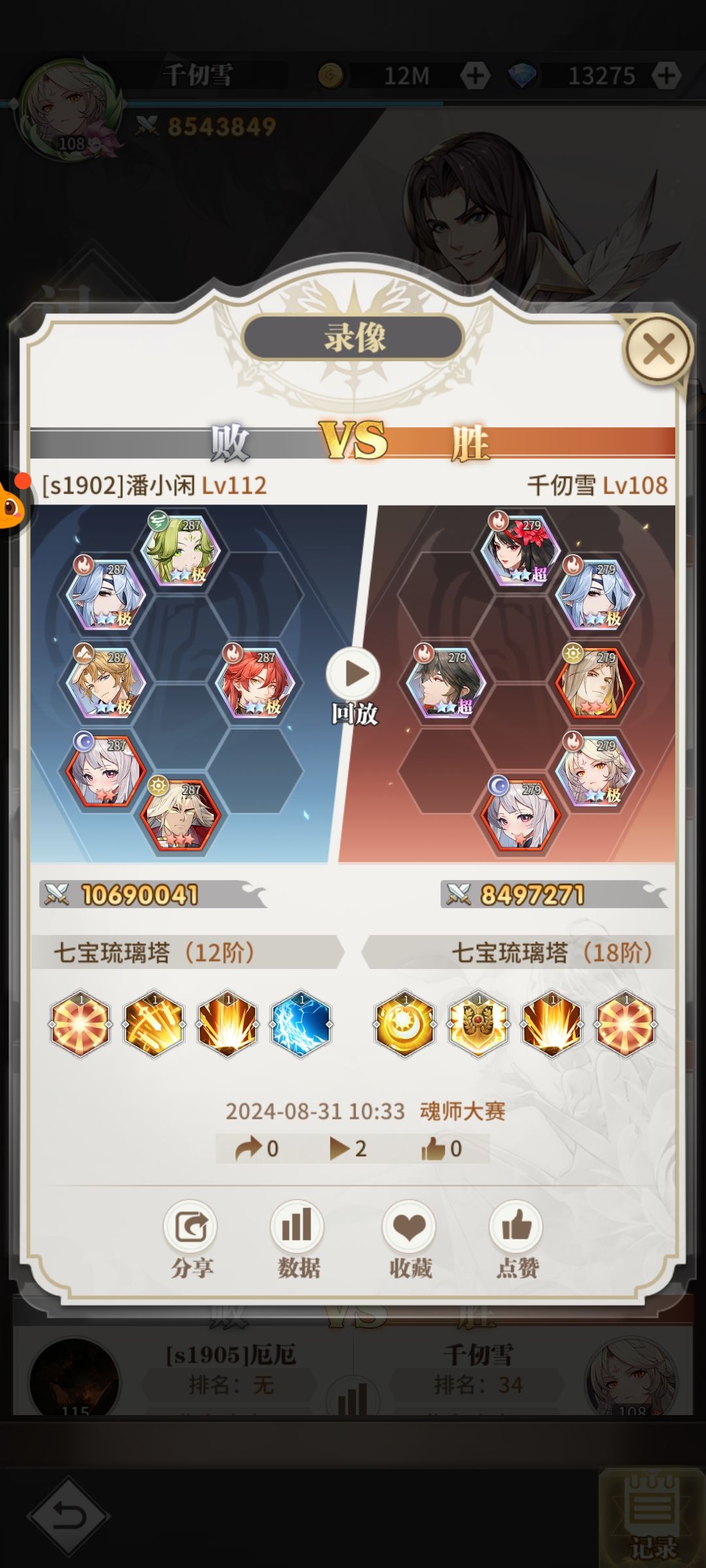 然后魔鲸王。千仞雪两个大输出都放后排。说实话很怕唐昊,但是毕竟等打高星唐昊的时候。估计放哪里也打不过了,所以直接放后排,防对面的混乱。