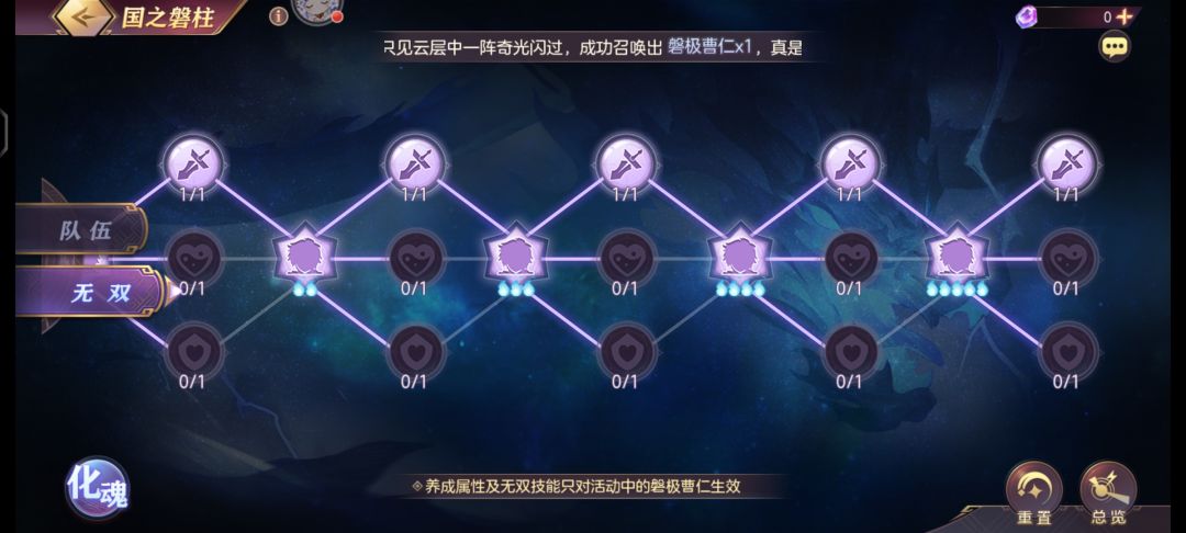 幻境试炼活动:养成先点无双那排天赋,那里把5火的天赋点出来后,点上面的队伍天赋,主要以提升攻击力为主,有些关卡会限制回合数