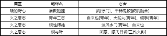 篇章“火之意志”、“晓的野心” 增加羁绊;