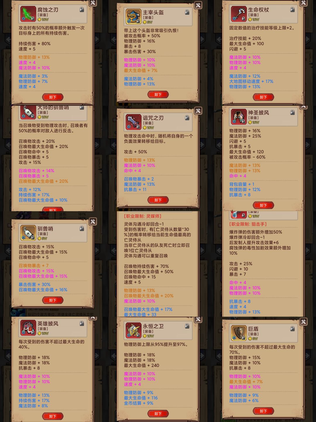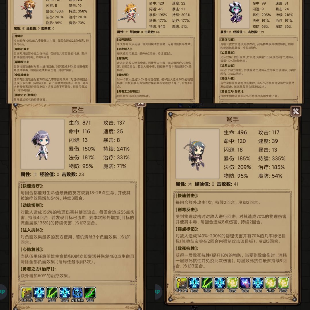 3.195以上:5星灵媒+5星毒镇+5星医生+3星弩手(除灵媒外堆物抗60%~70%以上,弩手有绿刀)