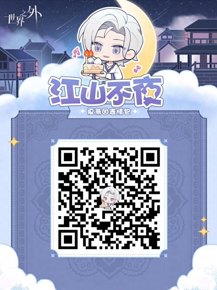 〓 微信平台:点击【我】-【表情】页面,搜索【世界之外江山不夜】,或扫描P2二维码,即可获取表情专辑。