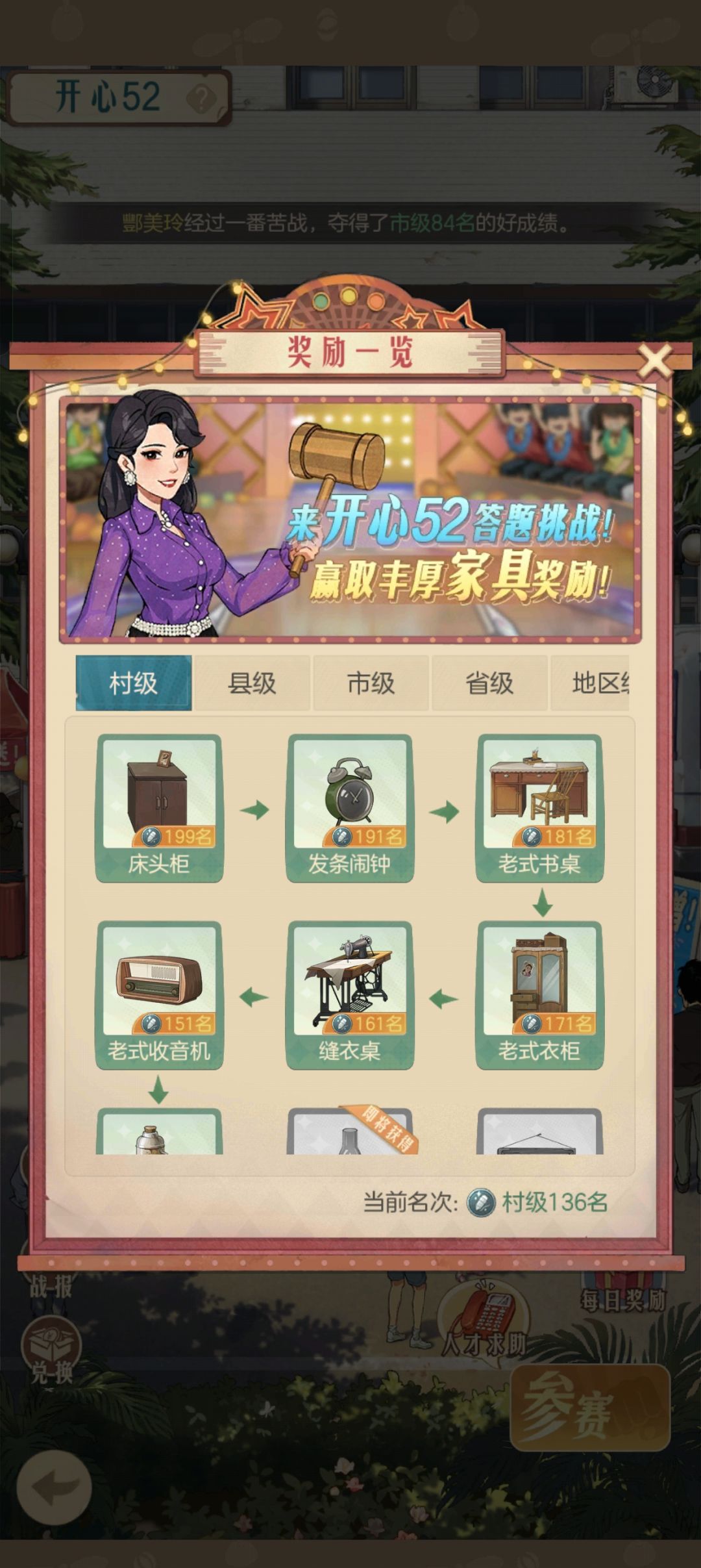 ⭐游戏中的各种陈设布局,处处透露着90年代的风格,老旧的海报,大屁股电脑。以前只能在电视节目上面看有趣的答题竞猜,现在我们也能模拟体验参与《开心52》节目,回答问题获取家具。