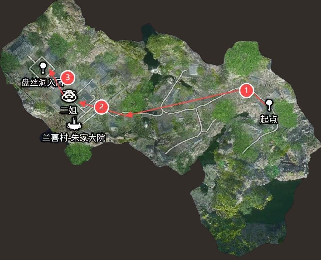 盘丝洞1①兰喜村朱家大院(搜刮)→②打Boss二姐 (搜刮) →③进入盘丝洞·上层