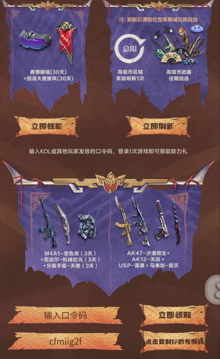 穿越火线九月逐鹿宝库,输入兑换码领取奖励