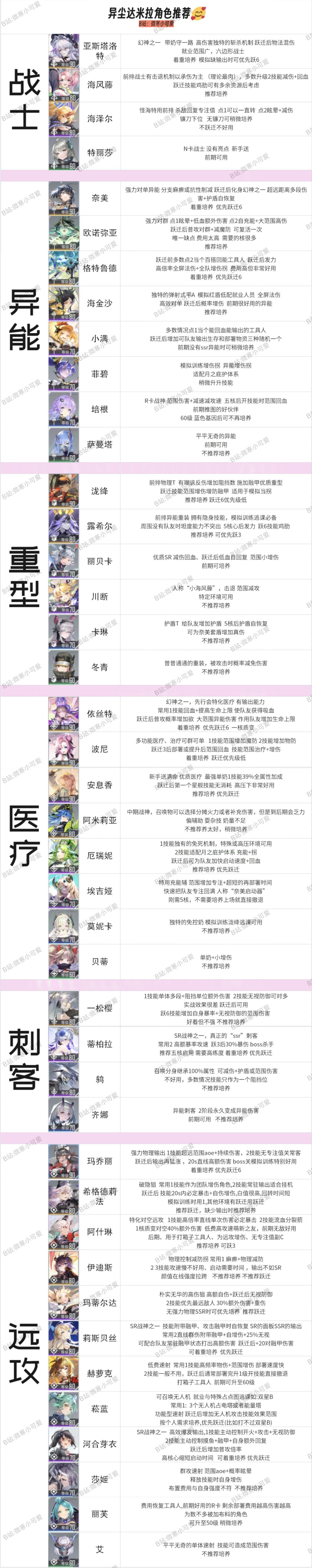 异尘可用角色很多,根据自身box选择,不少的sr都可以养到顶,副本难度不高。