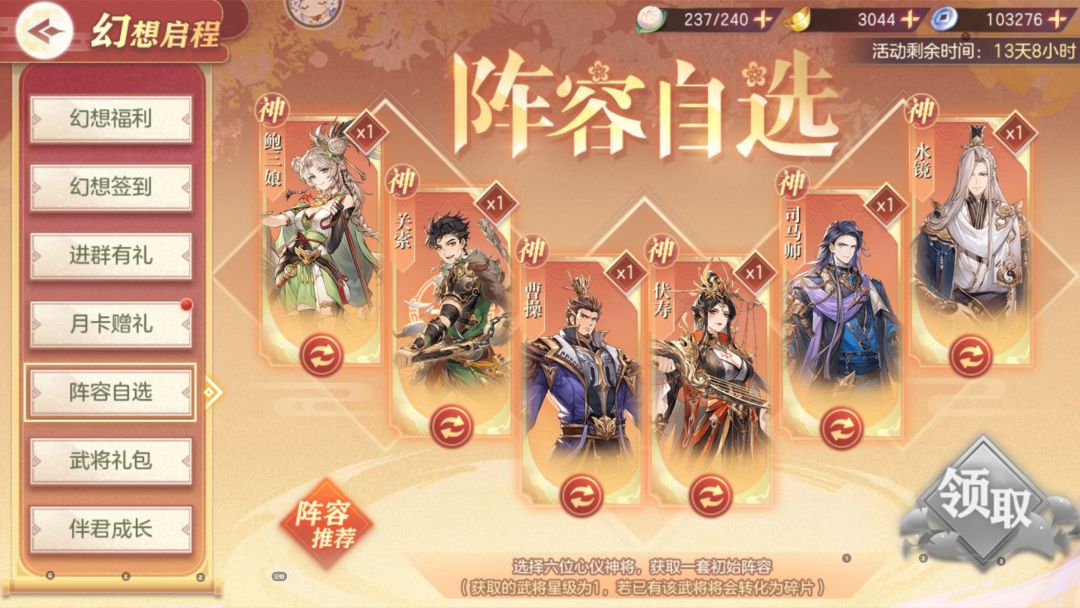 送魂将以及自选神将阵容,还有一个月免费月卡!