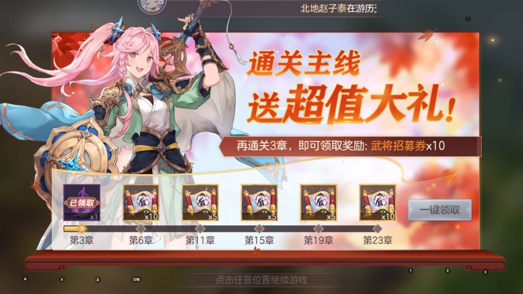 第一时间推主线拿奖励,抽卡需要100抽后才可以自选心愿武将!