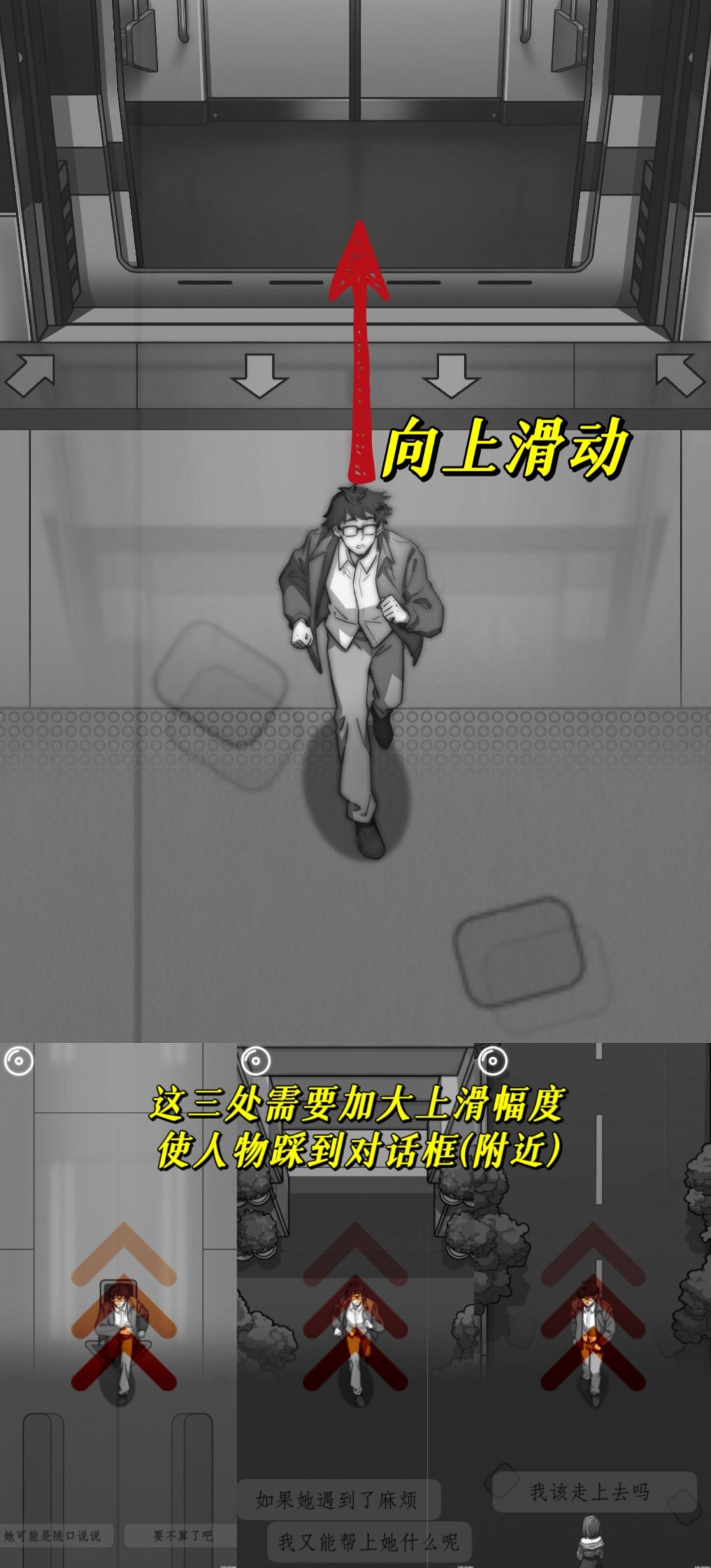 7.7 向上滑动,遇到滑不过去的地方需要加大滑动幅度,使人物踩到对话框上
