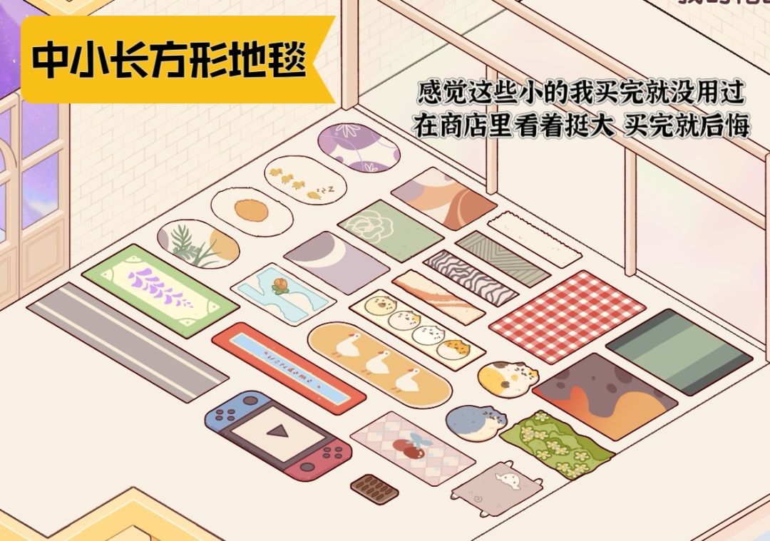 之前在逸家家具、闲菜二手里看那种地毯都很好看,但不放家里实在是看不出来大小,以至于我看到好看的就买,库库买,放家里有的可小了,有的地毯我从买来就没用过,有钱也不至于这么花哈哈哈哈,所以就想着出个地毯尺寸的测评吧,希望能帮到那些钱紧又控制不住想买的宝宝们!!!