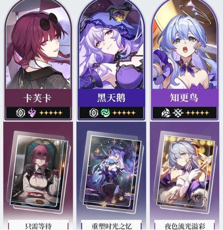 然后就是首个复刻自选池真香,卡芙卡+黑天鹅+知更鸟,这一强度安排直接让不少玩家感到惊喜,已经有卡黑玩家可以适当补一下专武。