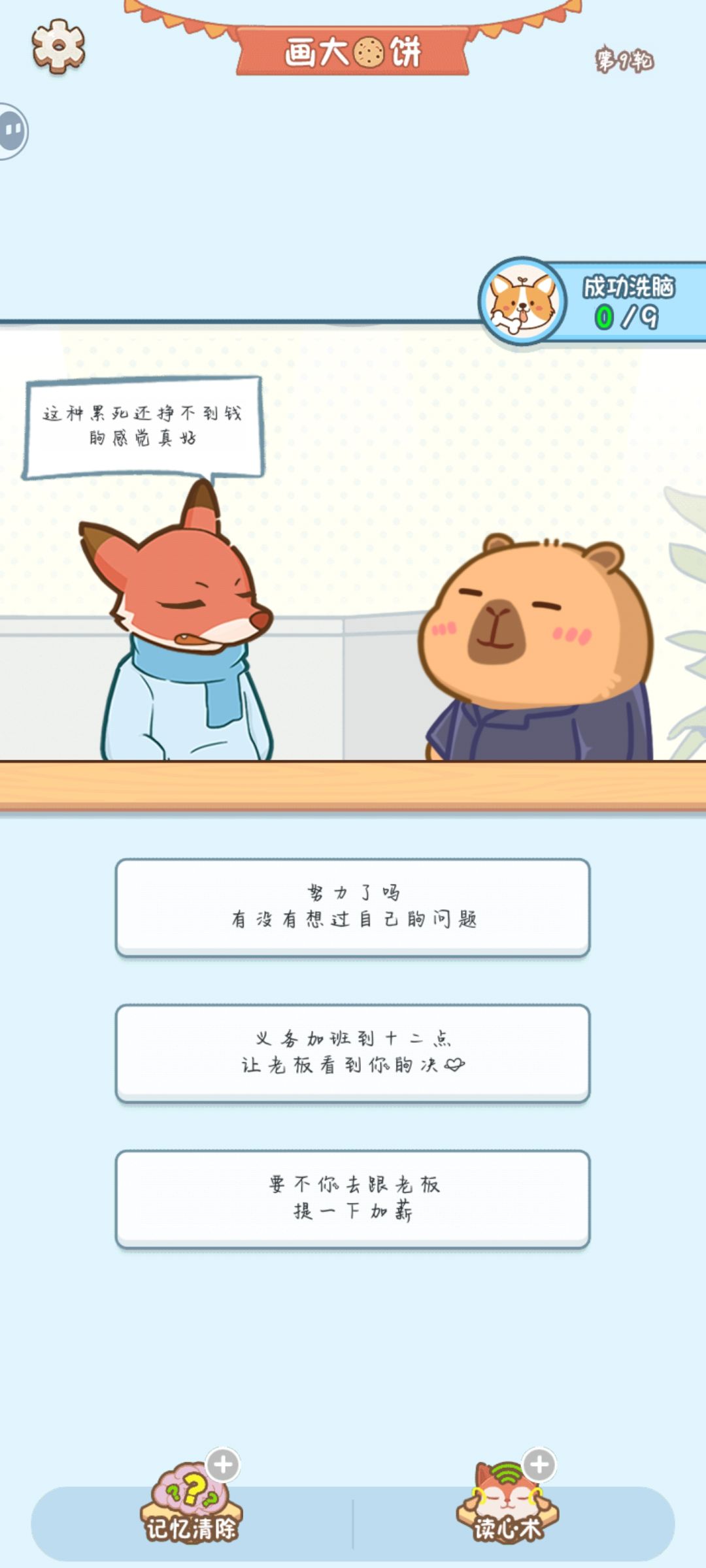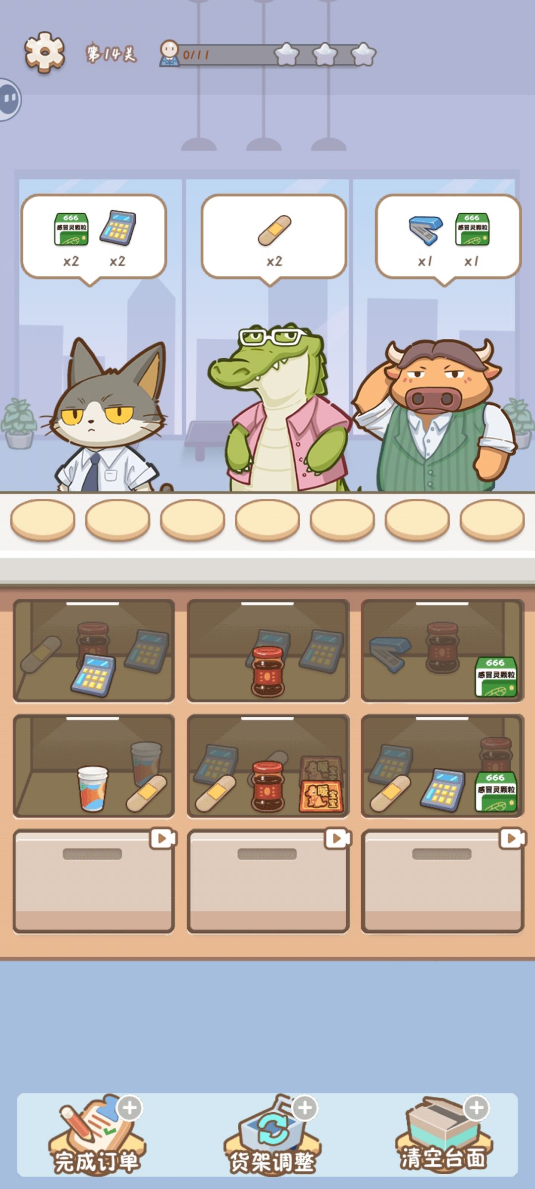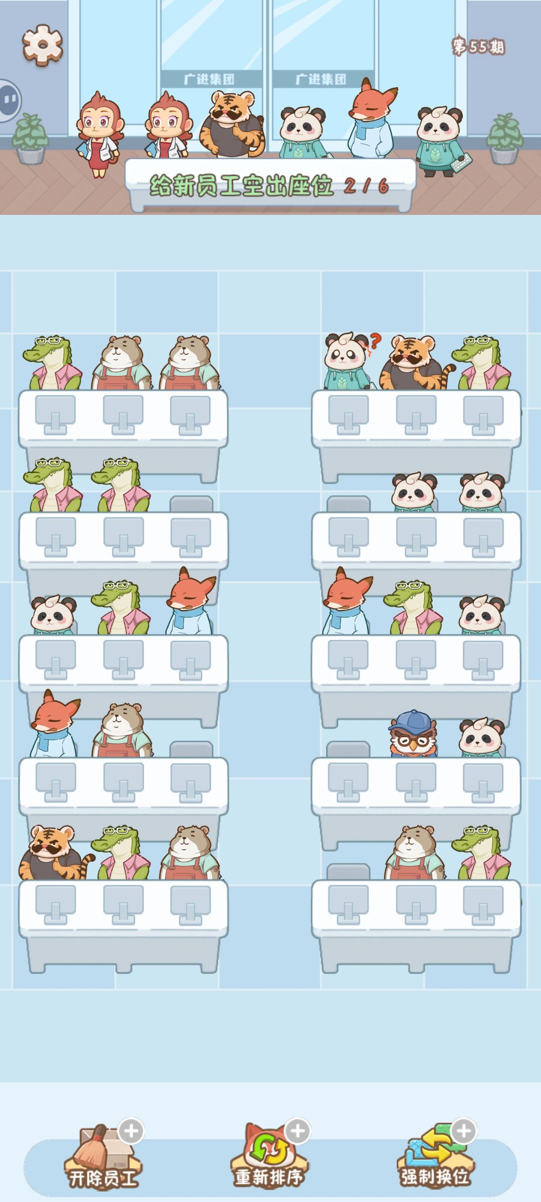 。我觉得相对于物品领用还是入职接待好玩儿一点,很顺手,也不怎么强制看广告,就是偶尔会有bug,因为它是每局结束界面是继承到下一局的,所以偶尔会有开局就是死局的情况,这种就得看一下广告领一个刷新道具了,不过概率不是特别高。(还有个bug是通关没提示,我都把同事合成消除没了也没通关,退出重新打就没问题了,估计是个小bug,不知道修复没,我玩儿好几天了就碰着过那一次)。画大饼没啥说的,对话内容比较少,适合刷等级,几乎都是固定队对话,多试几次就知道对谁说啥话了。