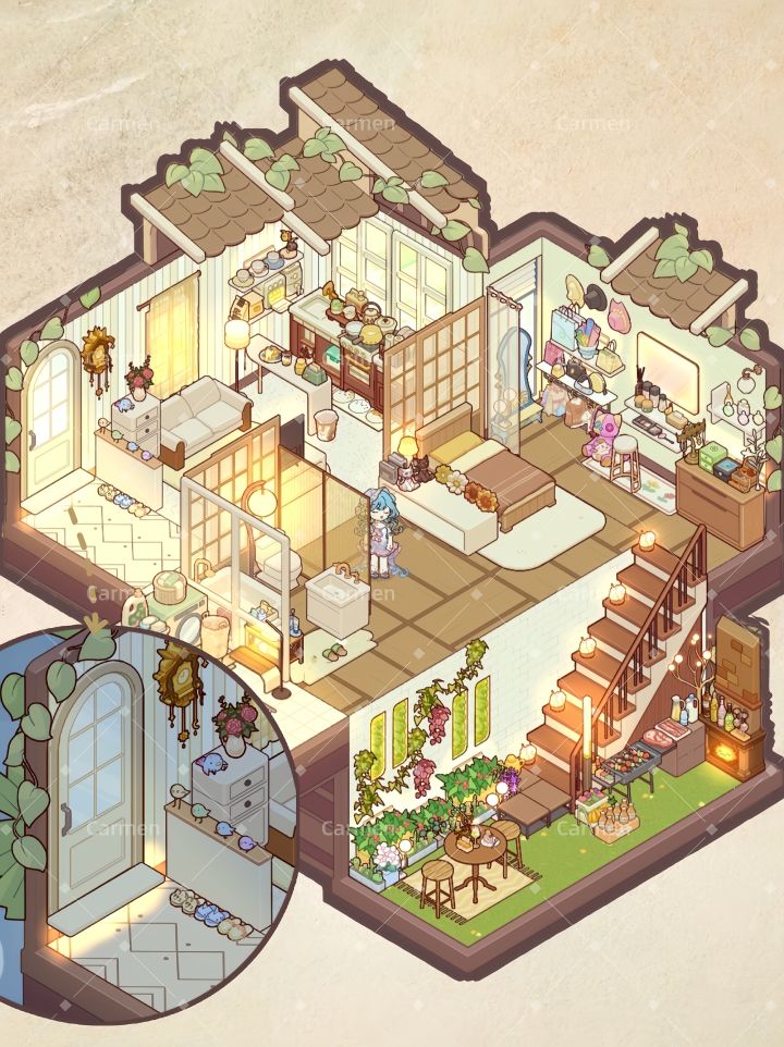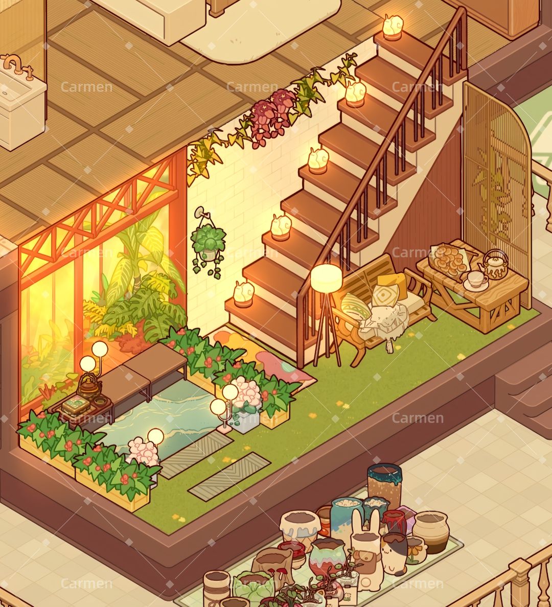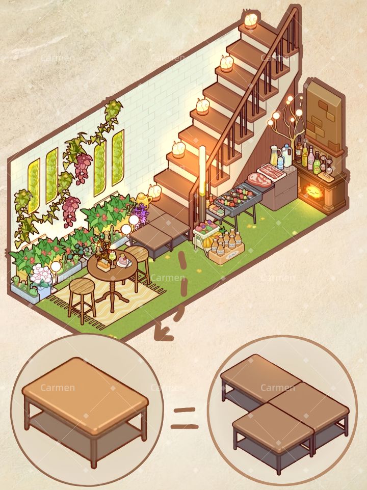 2.矮桌可以拼接成露台,可造性很强最后一张图有示范(同理也可把窗户换成绿色中式的那两个窗户)
