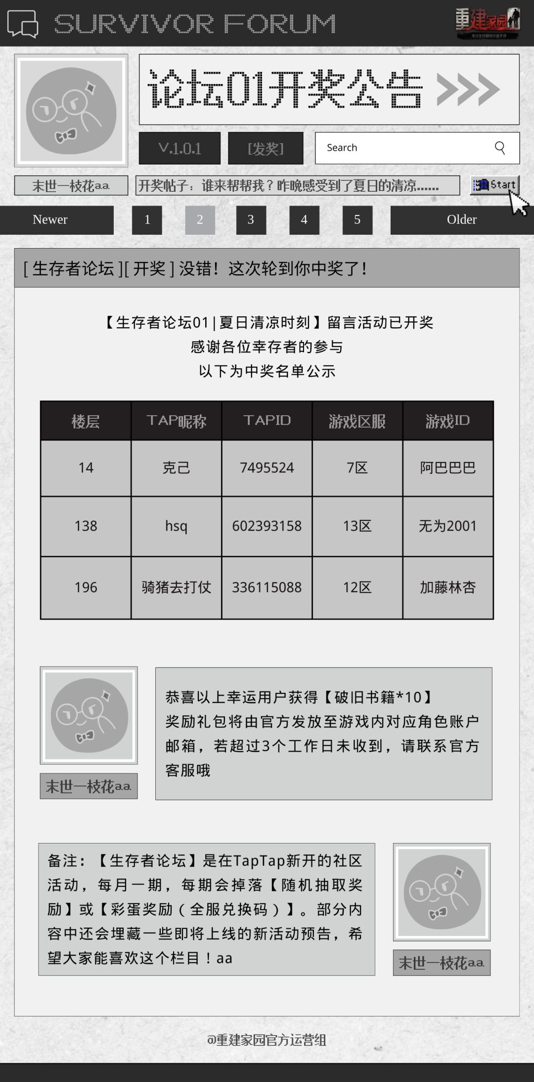【开奖公告】生存者论坛 01 | 夏日清凉时刻