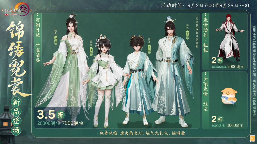 月下飞花,侠影天涯,新一期“锦绣霓裳”活动开启,全新定制外装“竹露清昼”清新登场!