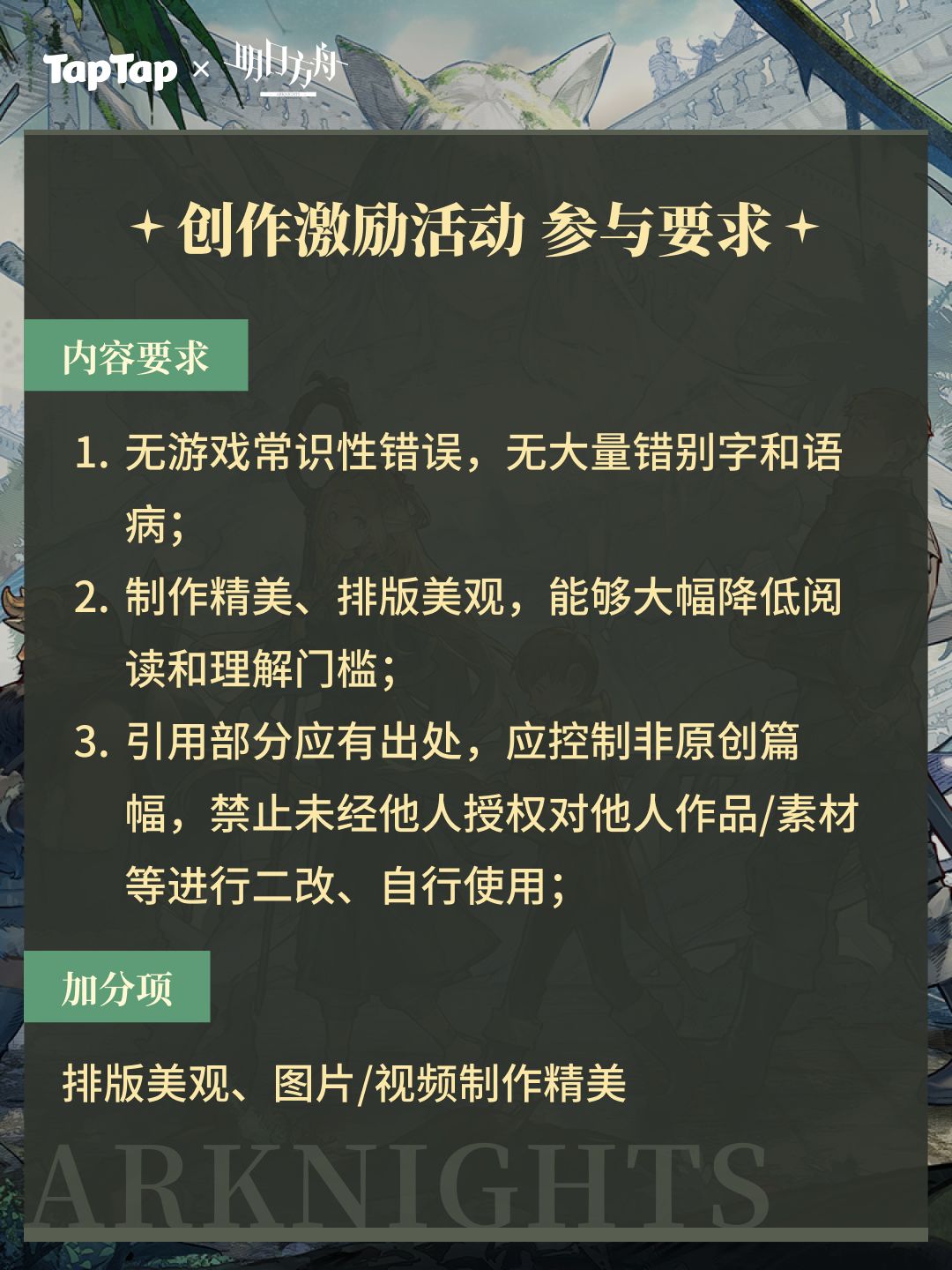1.作品需要正确带#明日方舟迷宫饭联动 活动话题投稿才能纳入奖励结算统计