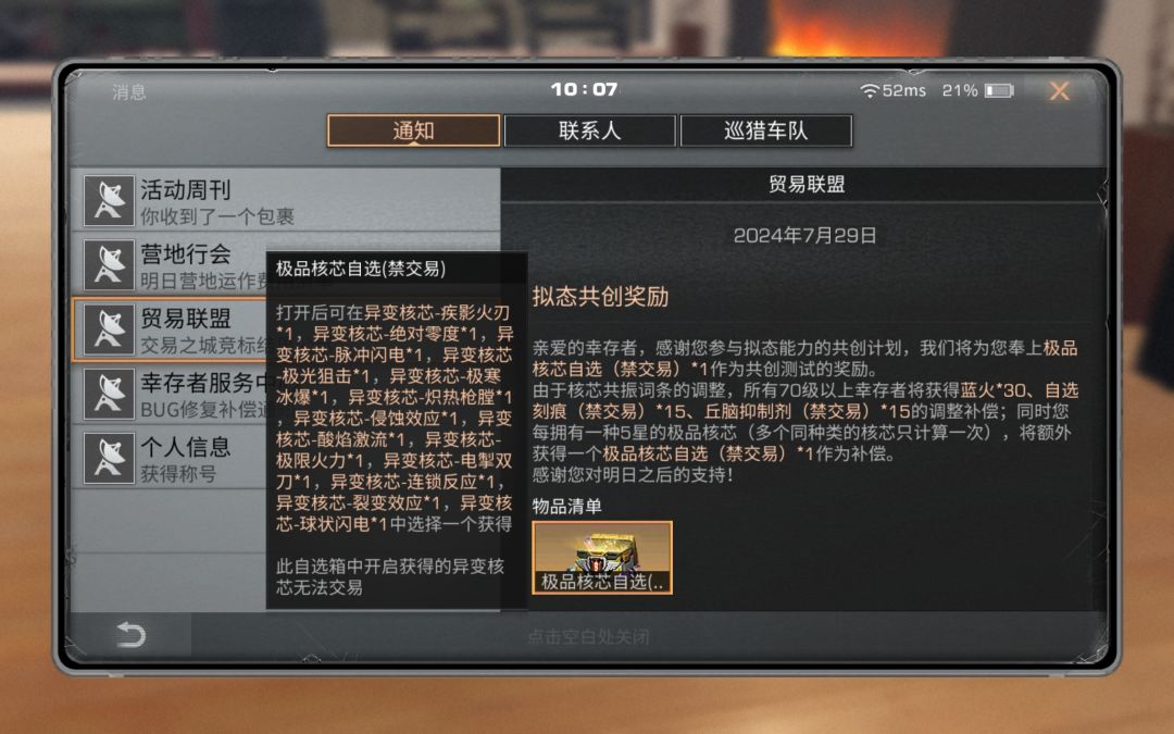 - 出售资源:采集到的稀有资源(如高分子涂层、薄膜面料等)、通过钓鱼获得的珍稀鱼类等,可以在交易行出售换取金条。