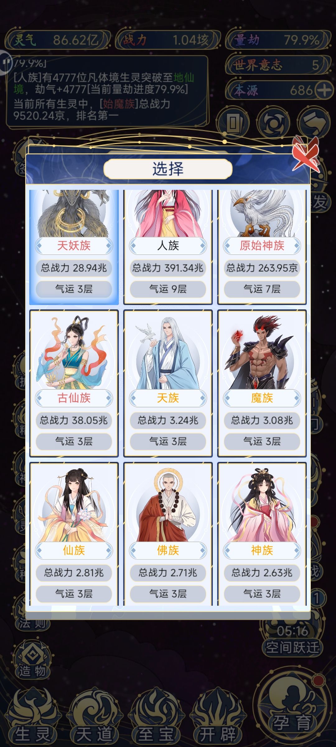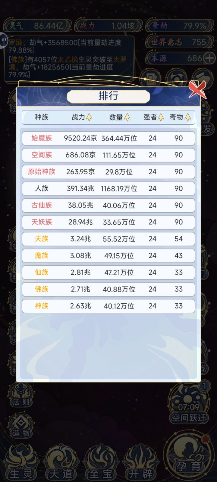 刷宇宙能量提升福佑(种族战力翻倍提升)