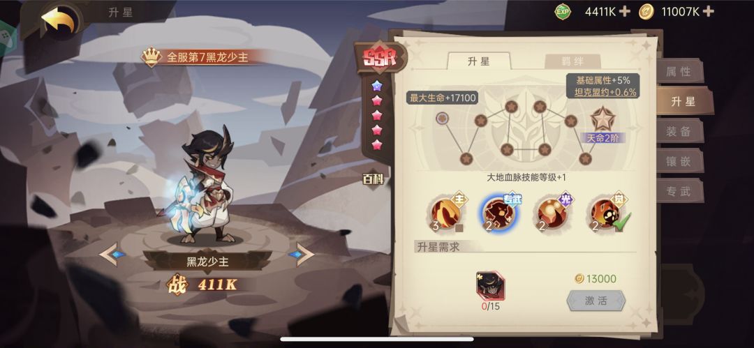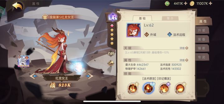 黑龙天命一阶以后,ssr抽猩红+女王。黑龙技能选抓人。猩红队极限推图,装备不缺,所以一队全法系,氪度400,推图是最满意的地方。
