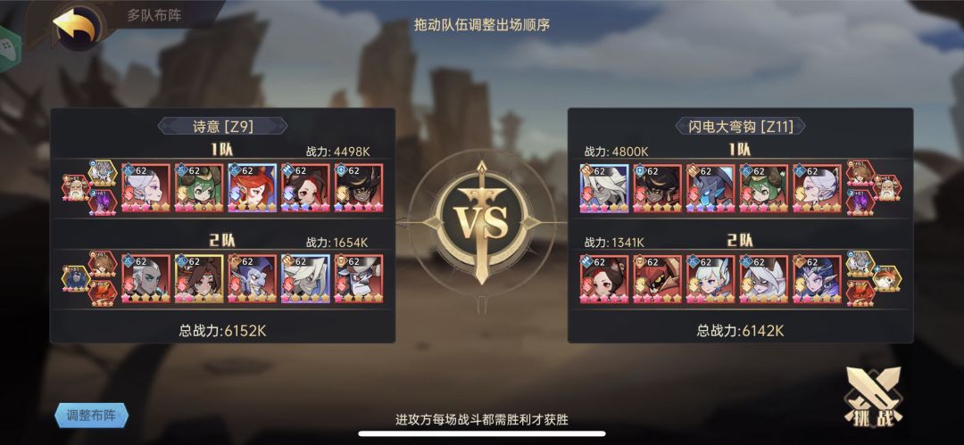 建议还是猩红、红龙、女王一队。女王是内,猩红回血,猩红战力一队最高