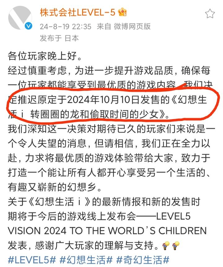 LEVEL5这个公司已延期著称,游戏延期,测试延期,就连发布会也曾经延期过![[表情_捂脸哭]](https://img.tapimg.com/market/images/83aa452eea88b5c64df710bca367b7e9.png)