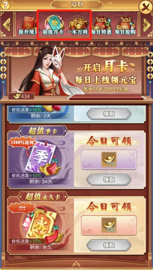 至尊特权+超值月卡中的月卡、季卡、永久卡。