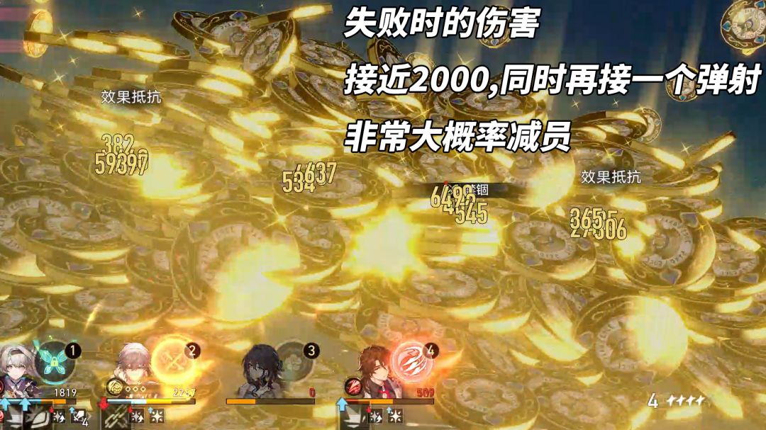 诡奕砂金(109万血*2):每间隔1次行动开启对赌技能,阶段1是单人、阶段2是群体,胜者获得增伤并激活终结技,败者获得易伤以及高额惩罚攻击(大概率被禁锢)。注,胜负只影响我方角色,诡奕砂金对赌输了无惩罚。