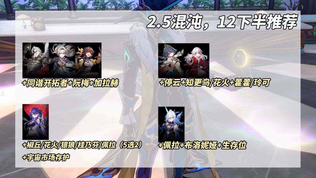 ①飞霄+貊泽+知更鸟+砂金。2.6UP角色,但与本期混沌有时间上的交集。