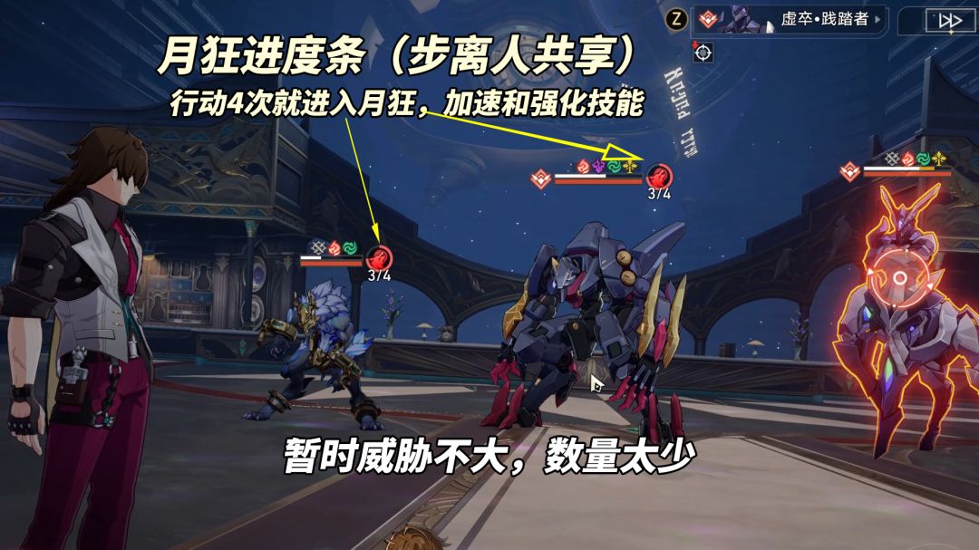 ②咆哮灵柩(54万血),继承了步离人月狂特性,步离人相关敌人共行动4次后速度提高、解锁群体控制技能(本期第2波仅单只出现,叠层太慢威胁不大,只是给大家提前适应,为未来呼雷相关步离人扎堆版本做预演)。