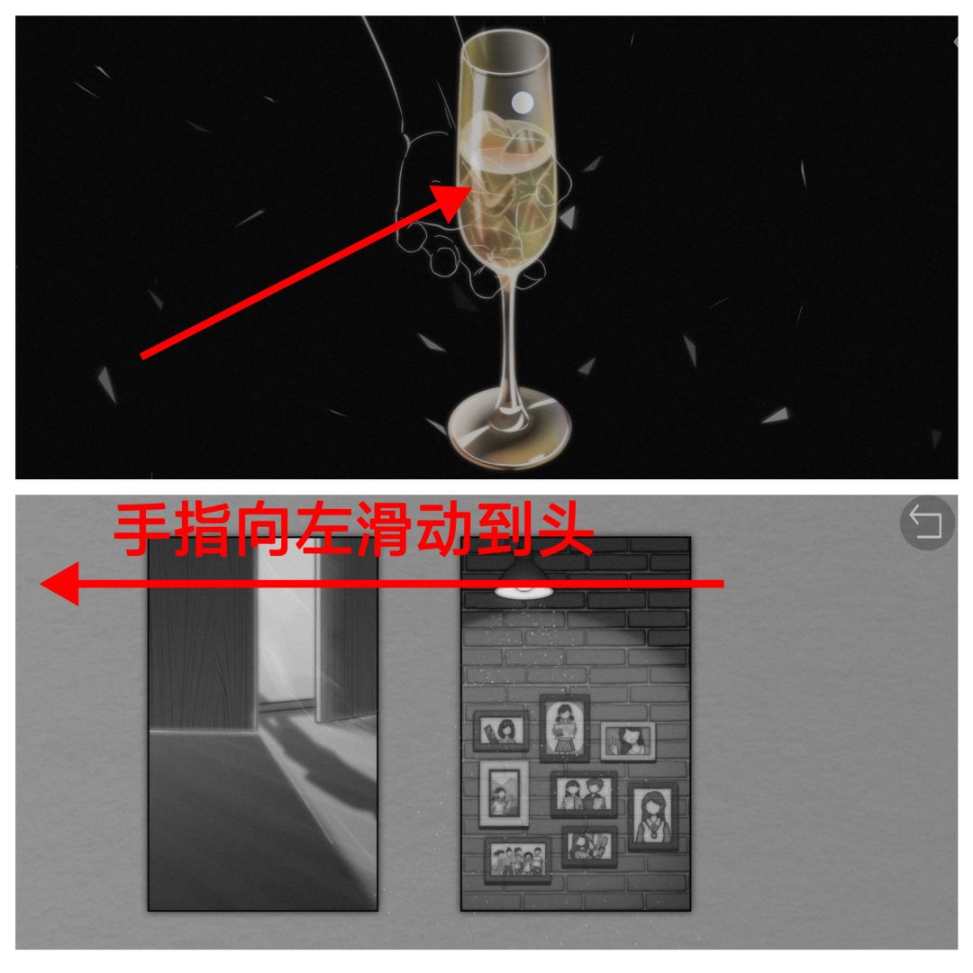 9.一杯酒将女主从回忆拉回现实;点击喝酒;向左滑动屏幕到底,切换到男主视角